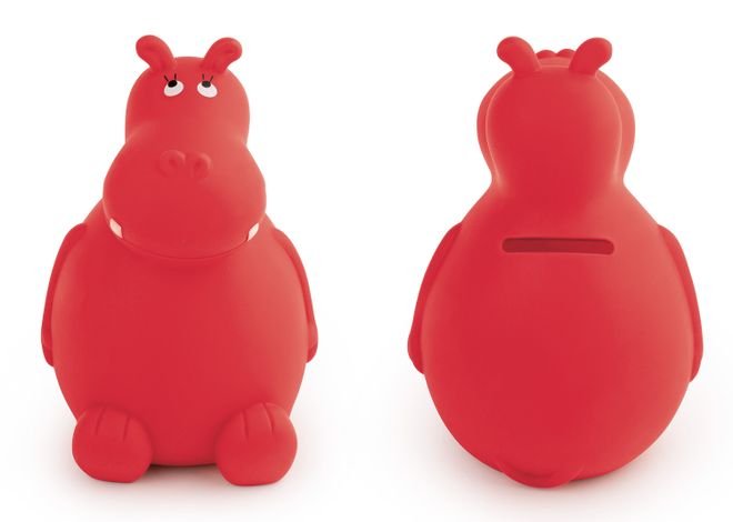 Alcancía en forma de tierno hipopótamo, tamaño ideal. Con tapón en la parte inferior para vaciar la alcancía.