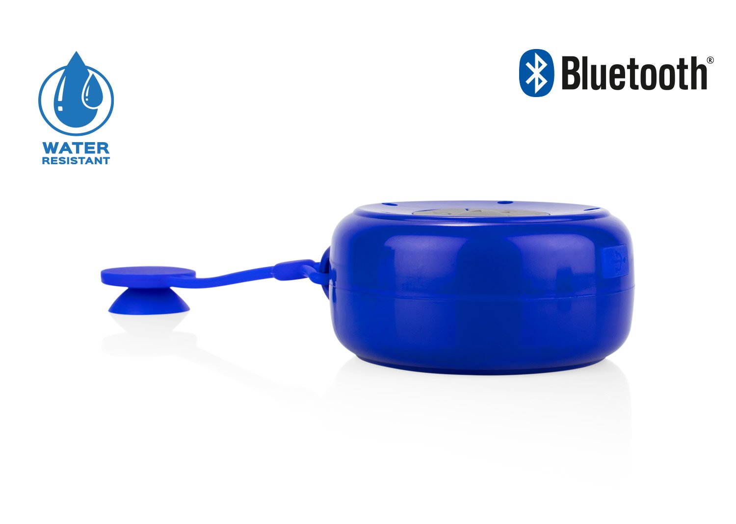 Altavoz Bluetooth 3.0 resistente al agua novel IPX4, alcance de hasta 10 metros, batería de litio. Tiempo de trabajo aproximadamente 4 horas. Tiene colgante con chupa ideal para ducha.