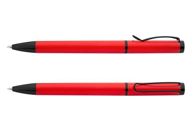 Bolígrafo de color sólido, punta y clip de color negro. Sistema de apertura Twist.