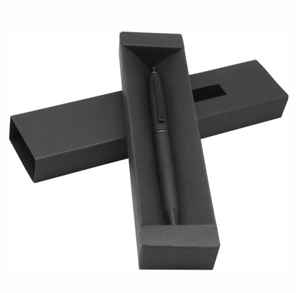 Metálico. Bolígrafo touch con apertura giratoria. Destape acero en la parte superior. Cuerpo color negro mate. Puntera y clip color negro brilloso. Tinta negra. Presentación en caja de regalo.