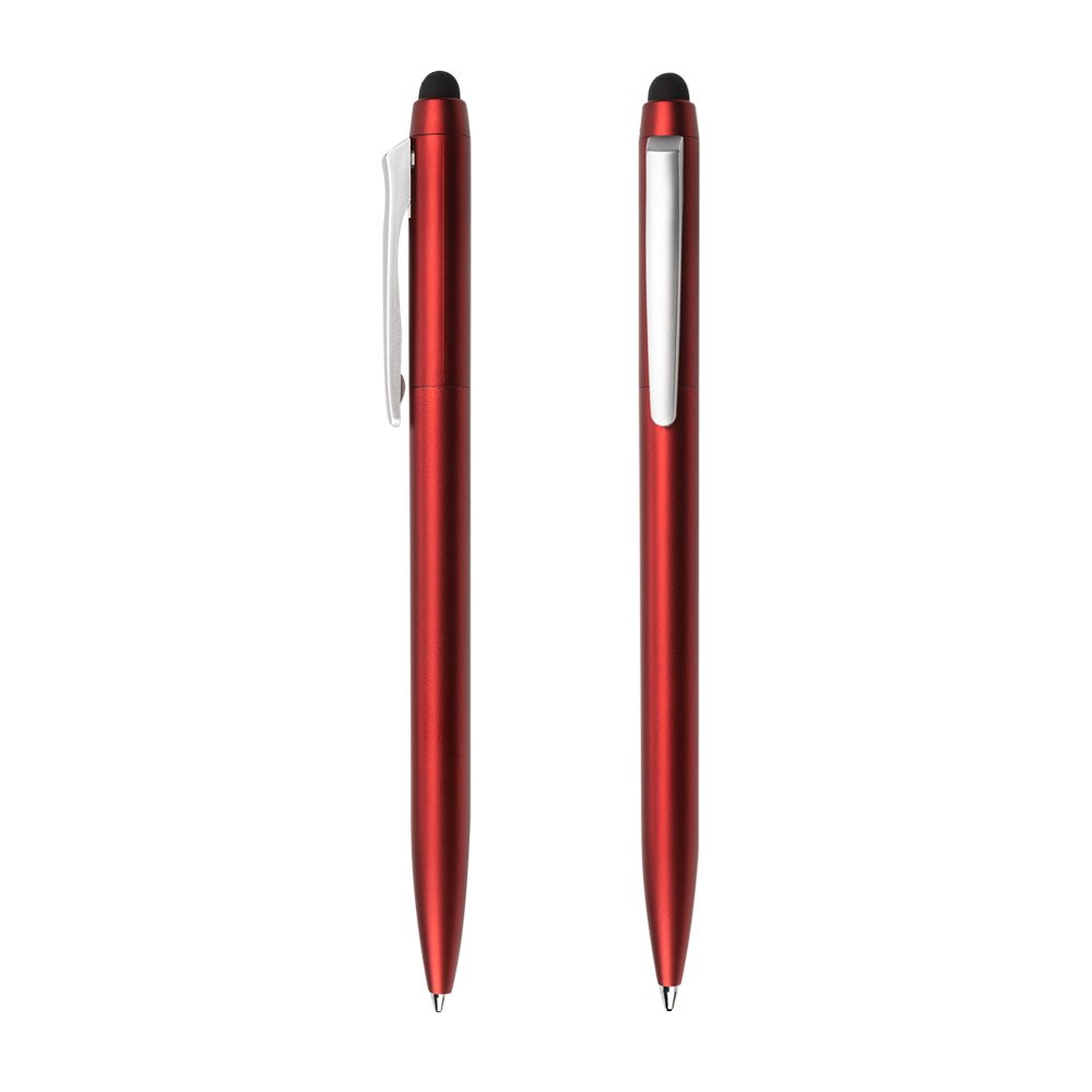Bolígrafo plástico con sistema de retractiil en el clip y sistema Touch para dIspositivos con pantallas táctiles.
