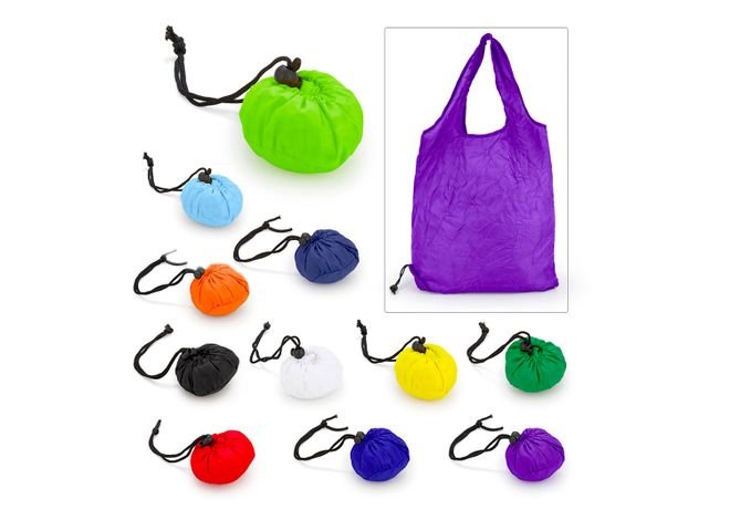 Bolso plegable con cordón para fácil almacenamiento. Viene en presentación plana.