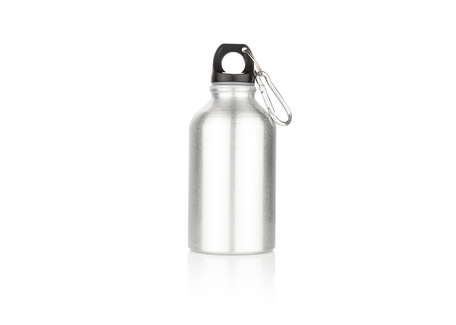 Botella de aluminio con gancho carabinero, tapa rosca. Libre de BPA u otras sustancias nocivas. No retiene ni transmite sabores. Pintura exterior atóxica. Capacidad 300 ml./ XX Oz.