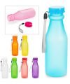 Botella flexible con tapa rosca y boquilla a presión. Incluye mosquetón para fácil transporte. Capacidad 450 ml / 15 Oz.