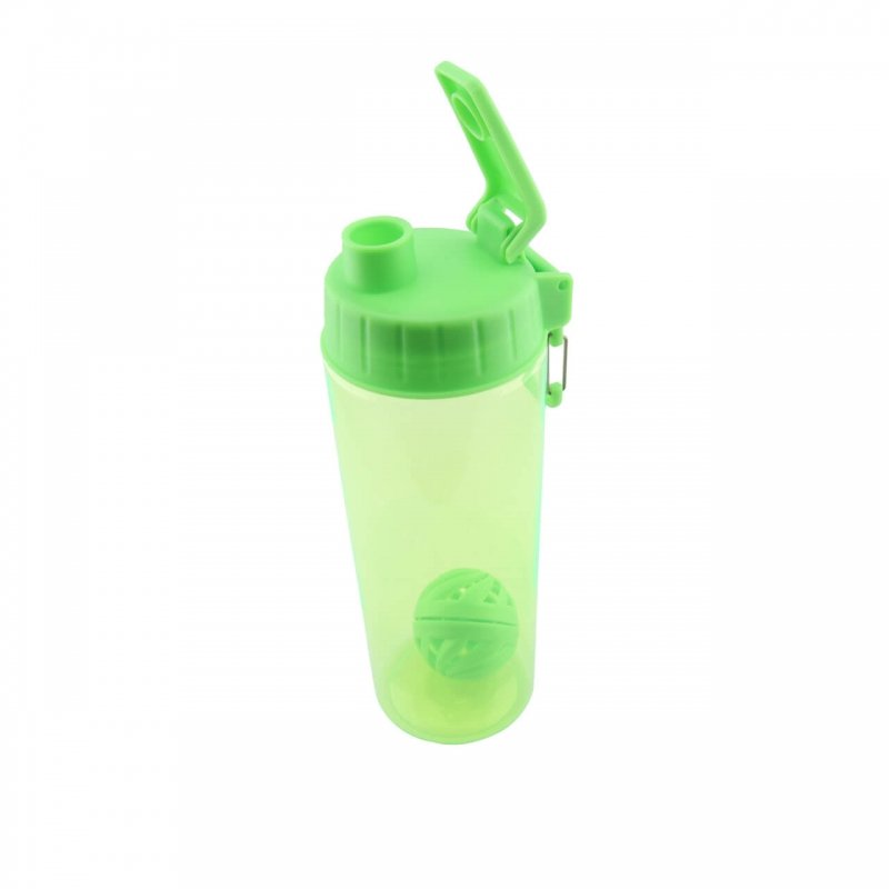 Botilito elaborado en plástico con tapa de rosca y boquilla, incluye mosquetón para sujetar.