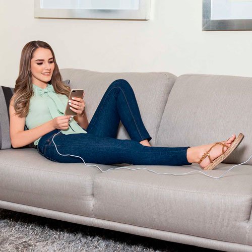 (Cable cargador compatible con USB, 8 pin, micro USB y entrada tipo C. Longitud de cable 3 m aproximadamente. Incluye estuche translúcido.)