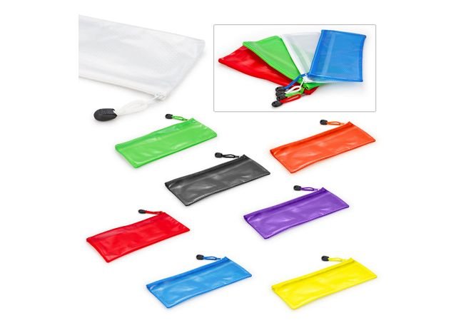Cartuchera escolar plástica, con bolsillo separador en la parte interior de malla.