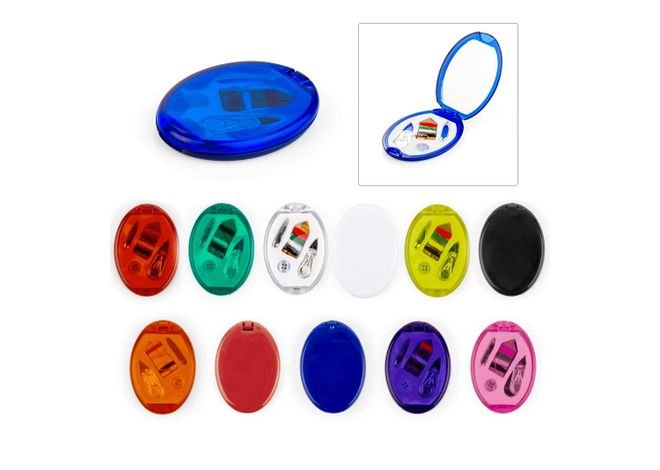 Minicosturero con espejo. Incluye hilos de colores, aguja, gancho nodriza, enhebrador y botón.