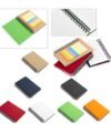 Libreta con tapa de cartón y argollado metálico doble “O” con troquel en forma ecológico. Bolígrafo ecológico incluido de color similar. Con porta bolígrafo. Tamaño aproximado: A5. 80 hojas rayadas.
