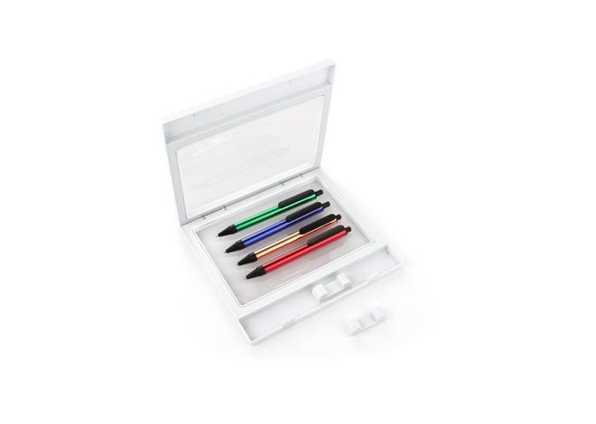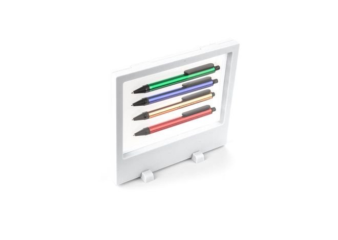 Exhibidor para Bolígrafos en ABS con película en TPU que permite su ubicación y visualización de forma práctica .