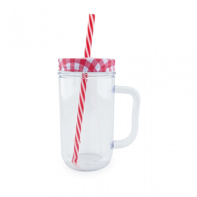 Elaborado en plástico tipo cristal, con tapa y pitillo.