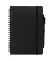 Funda de cuero sintético con función de soporte para teléfono. Tamaño A5, 70 g, 80 hojas Bolígrafo: bolígrafo + lápiz infinito. Hojas rayadas.