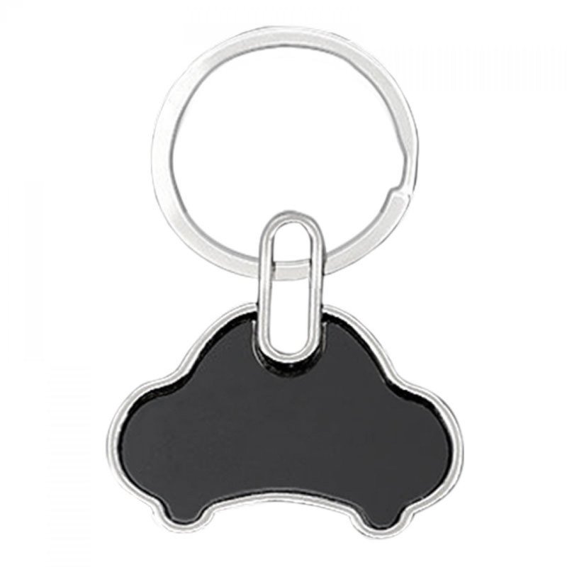 Llavero metálico con marco plateado e interior negro. De 3,8 x 2,7 cm.
