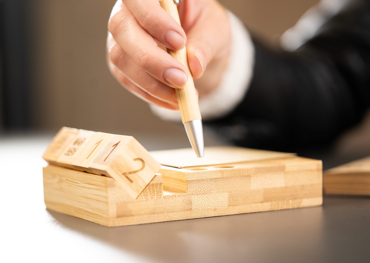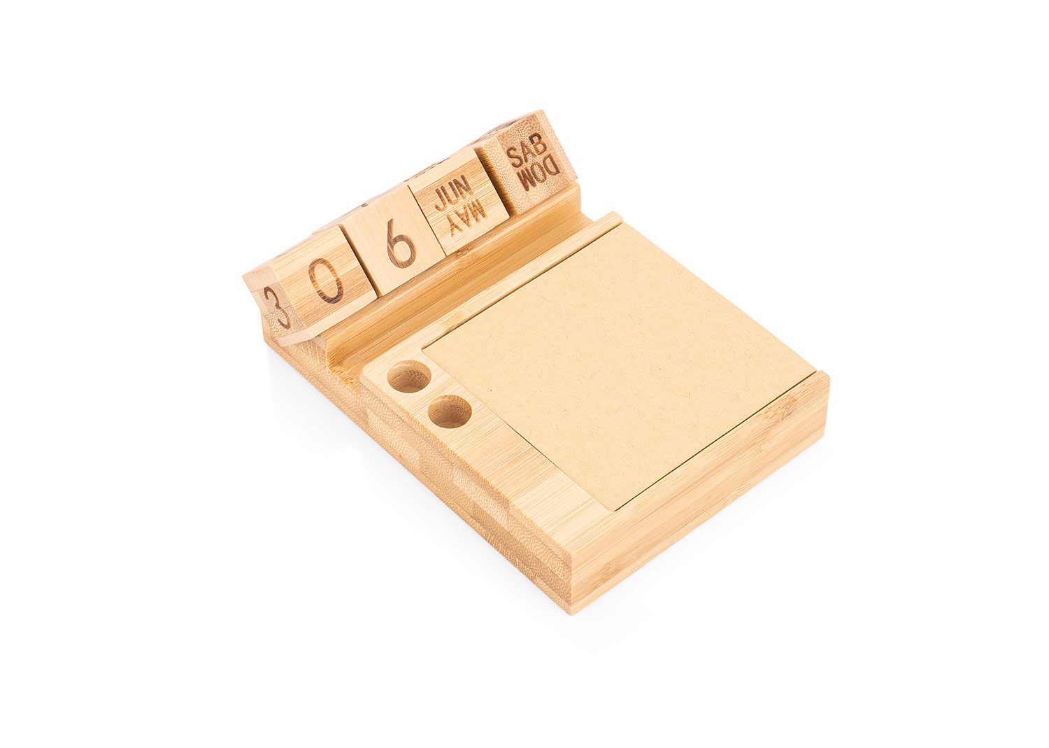 Porta notas de bambú con calendario. 100 páginas de papel tipo kraft.