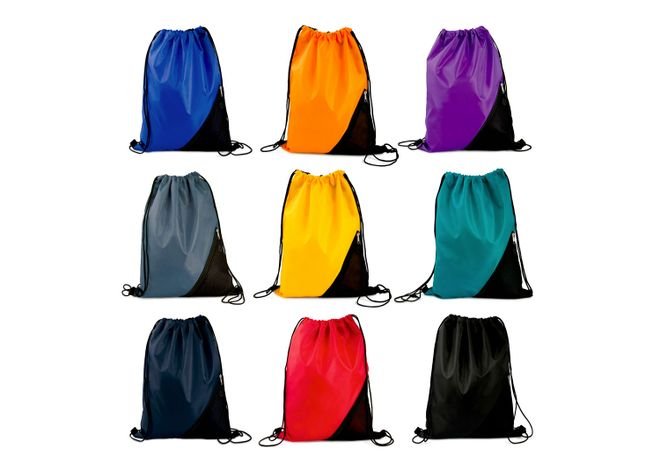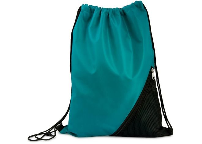 Bolsa dos colores con cordón para ajustar y cargar. Bolsillo delantero en malla con cremallera y orificio para audífonos.