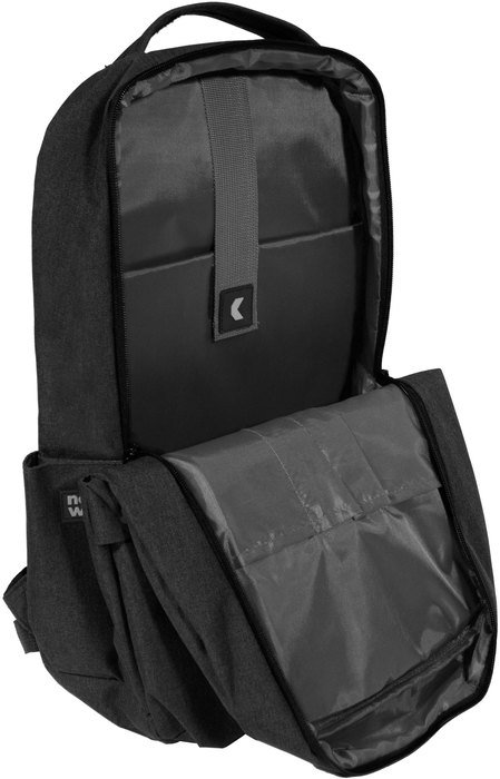 28 x 40 x 12 cm. Capacidad 14 litros. Poliester 300D, interior Poliester 210D. Mochila. Compartimento principal con bolsillo porta notebook acolchonado con tira y detalle engomado para una correcta sujeción. Dos bolsillos frontales con cierre oculto. Bolsillo lateral porta botella. Tira para sujetar la mochila en la manija extensible de un equipaje de mano.