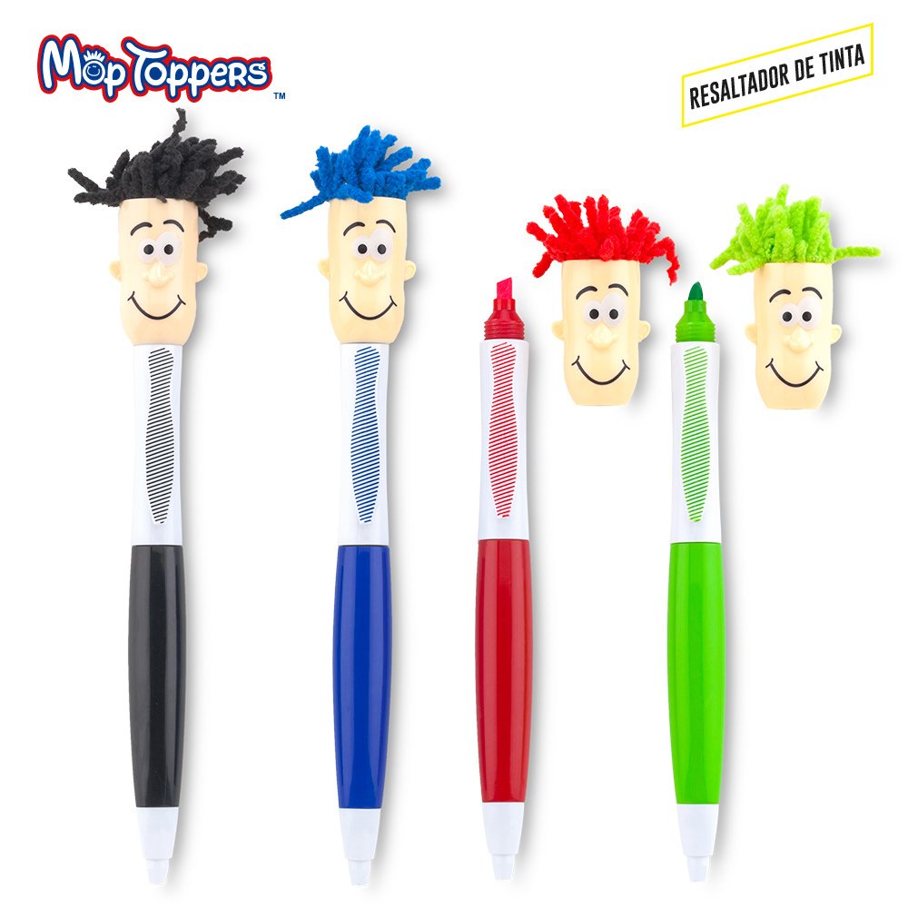 Bolígrafo plástico con resaltador de tinta y cabeza con microfibra para limpiar pantallas.