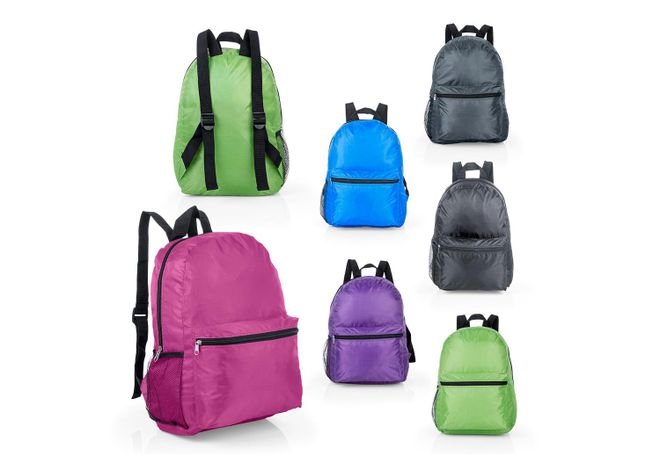 Morral con cargaderas ajustables. Bolsillo principal con cremallera, bolsillo frontal con cremallera y lateral en malla.