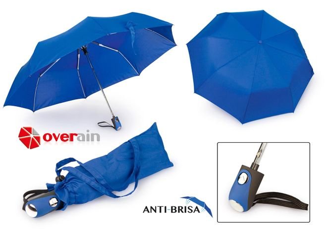 Paraguas 3 secciones de apertura automática y cierre manual. Antibrisa. Funda en la misma tela del paraguas con cordón ajustable.