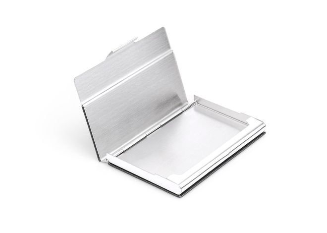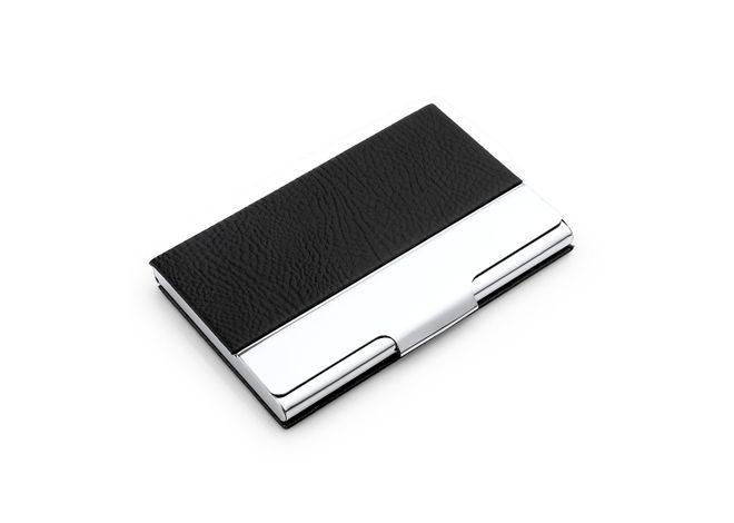 Portatarjeta Metalico con cubierta en PU, cierre a presion.