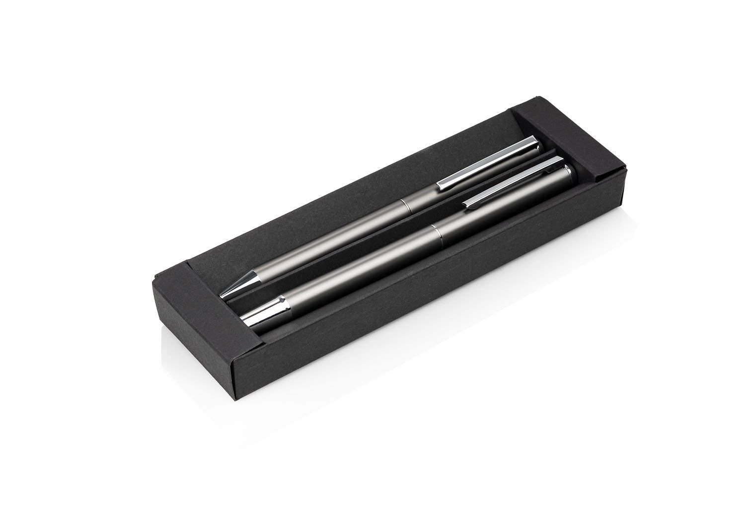 Set de bolígrafo retráctil de mina normal más bolígrafo roller con tapa a presión, en estuche de lujo.