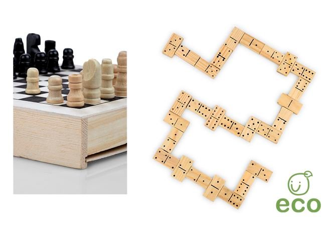Set de Juegos en madera incluye Ajedrez, Domino, Damas Chiinas y Mikado