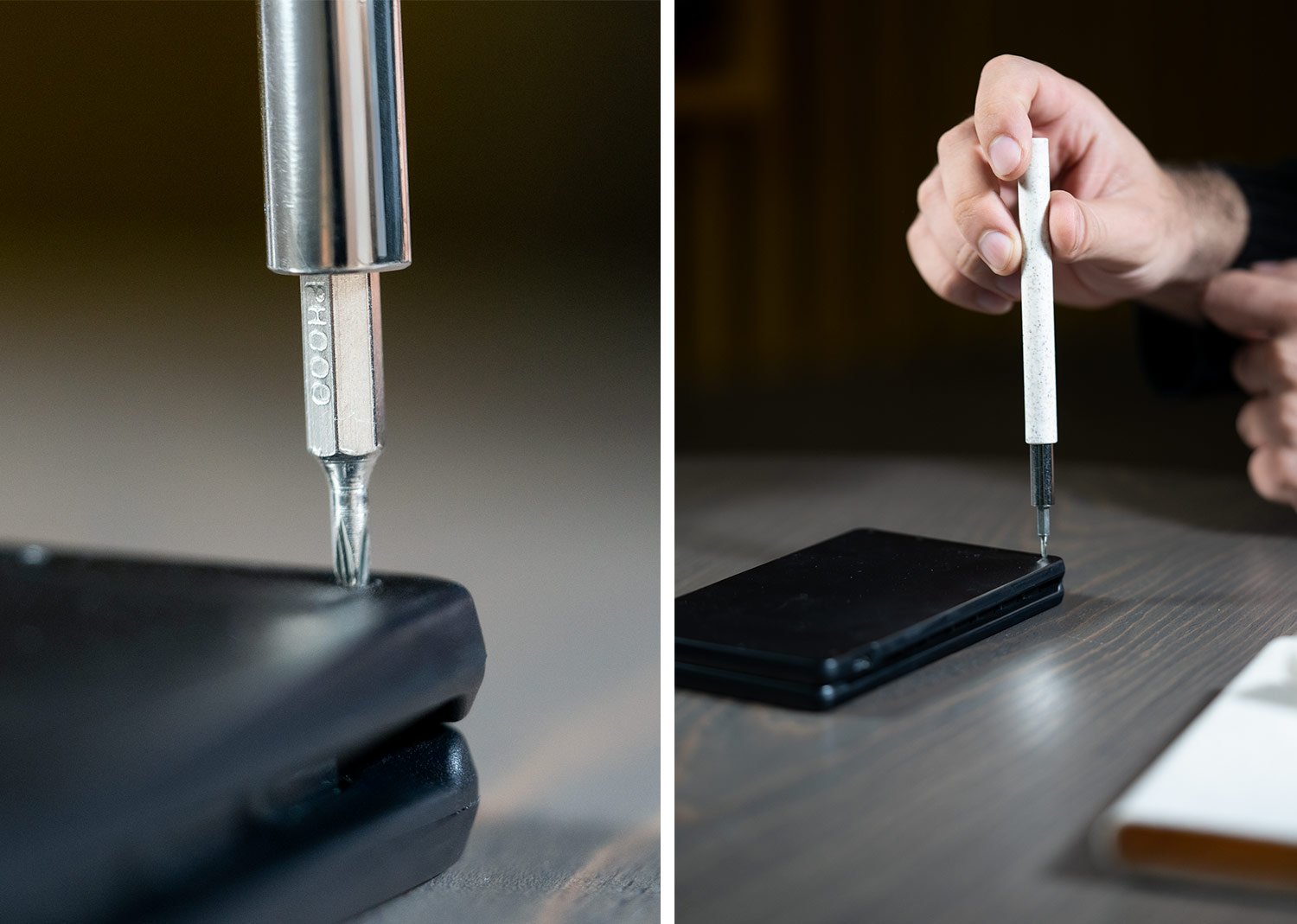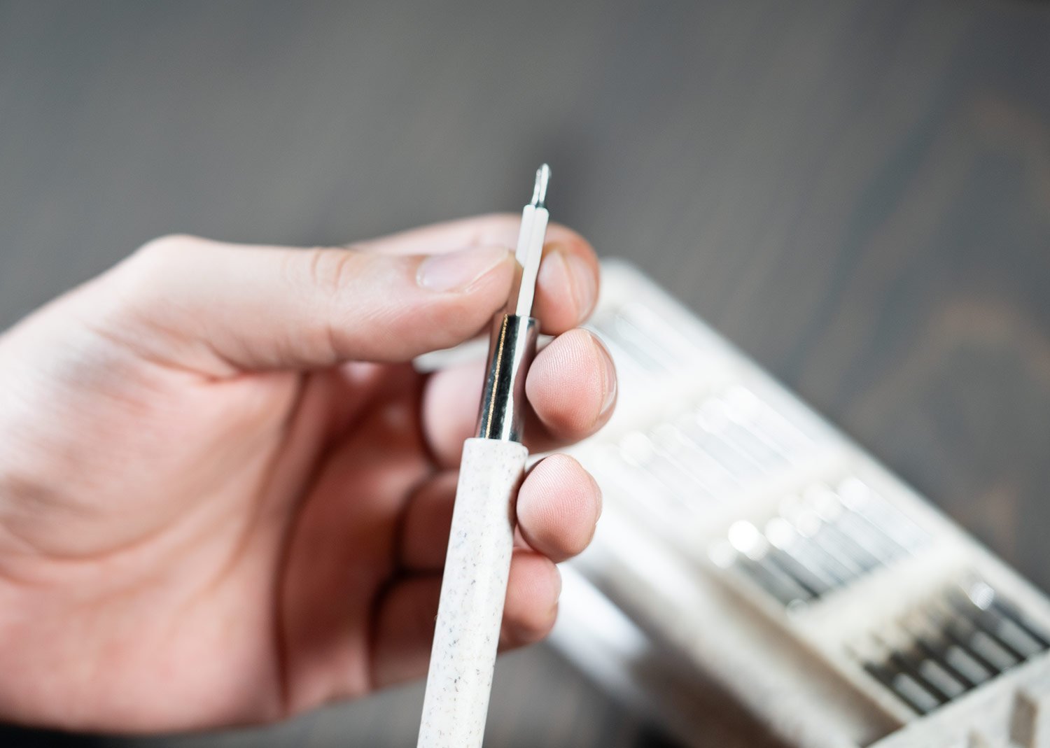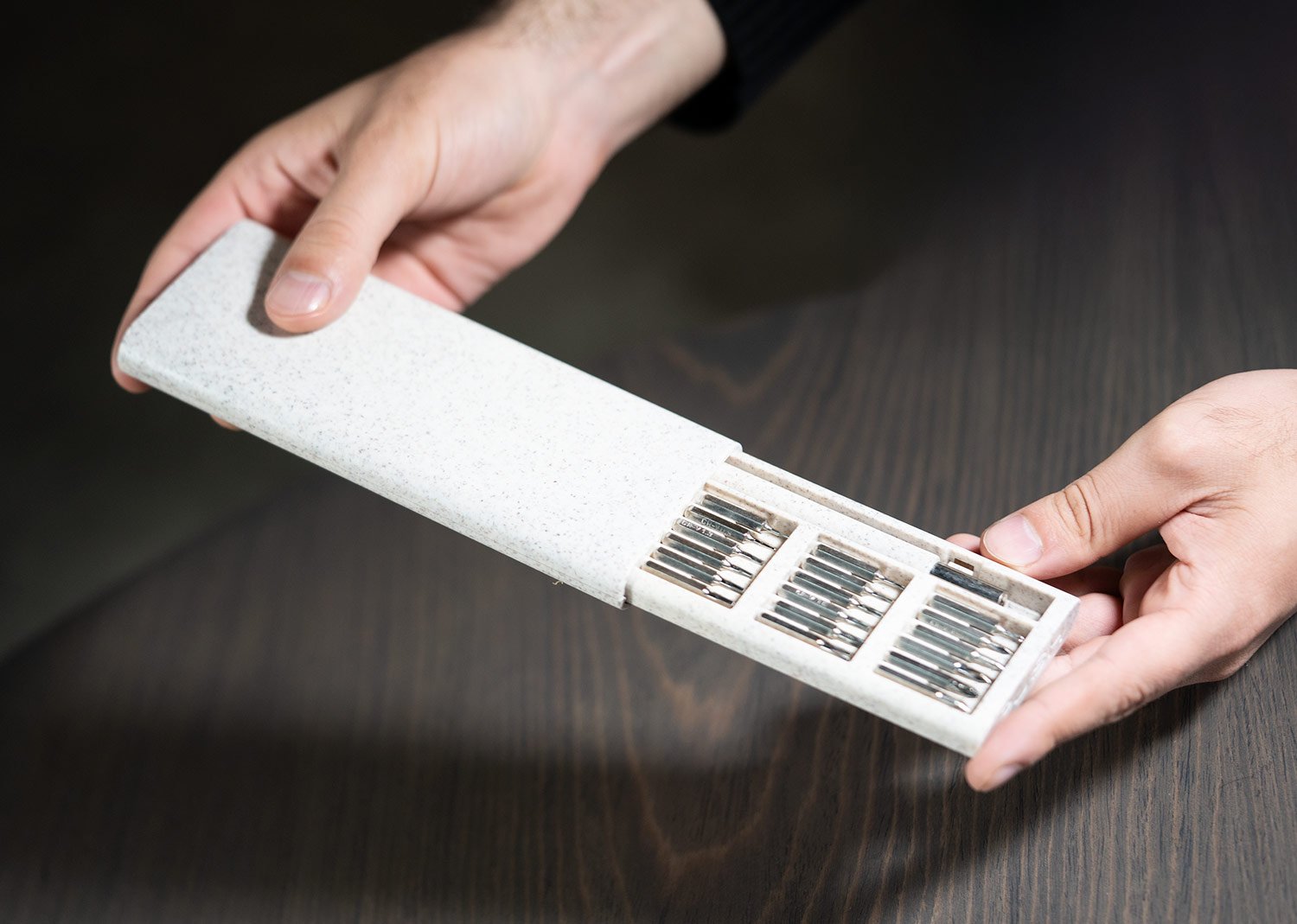 Juego de destornilladores empacado en carcasa de paja de trigo, consta de 24 piezas con tamaños para las diferentes necesidades.