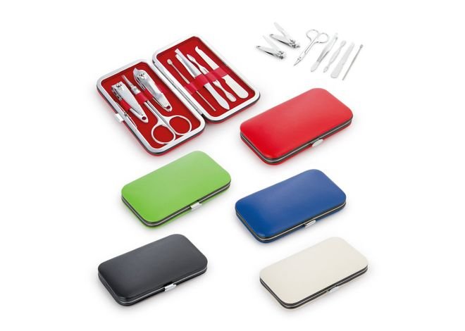 Set de manicure con cierre a presión que incluye: Lima, limpiador, depilador, bajacutículas, 2 cortauñas y tijeras.