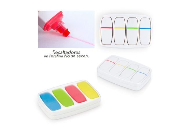 Set de 4 resaltadores de parafina (no se secan), en estuche plástico.
