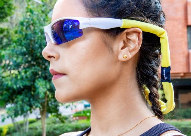 Sujetador para gafas con ajuste anti deslizante. La parte trasera se extiende y se convierte en una práctica funda.