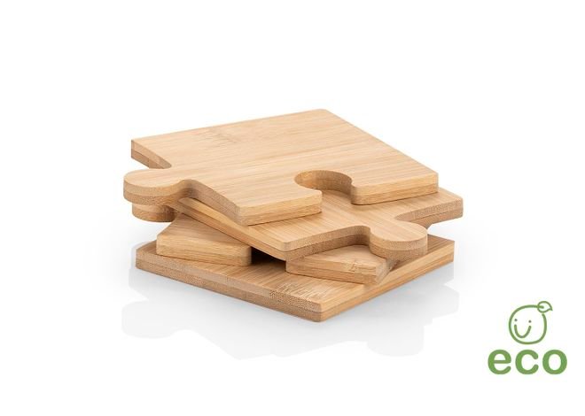 Practicos portavasos en Bambú y forma de puzle, que al unir se puede usar como tabla de Picar.