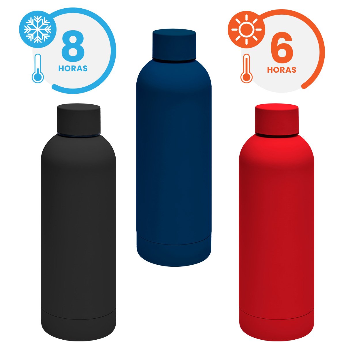 Descripción: Doble pared. Cerrado al vacío. Pared interna y externa acero inoxidable. Terminado tipo rubber en tapa y cuerpo. Tapa de rosca. Mantiene temperatura caliente 6 hrs y temperatura fría 8 hrs aproximadamente. Incluye caja individual.