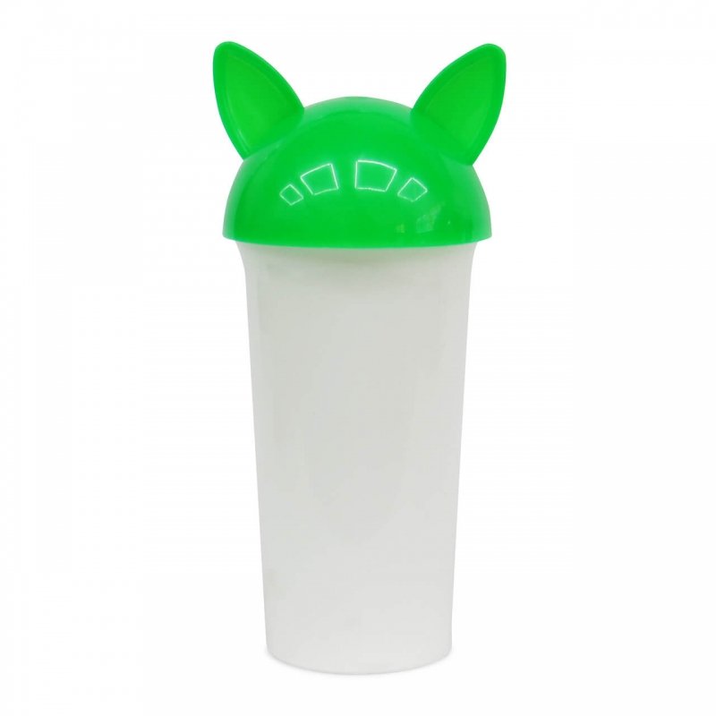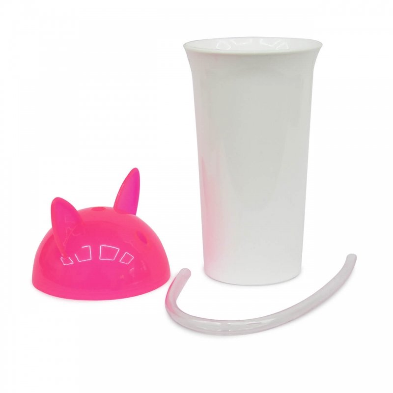 Vaso plástico con tapa en forma de perro, pitillo en caucho re-utilizable.