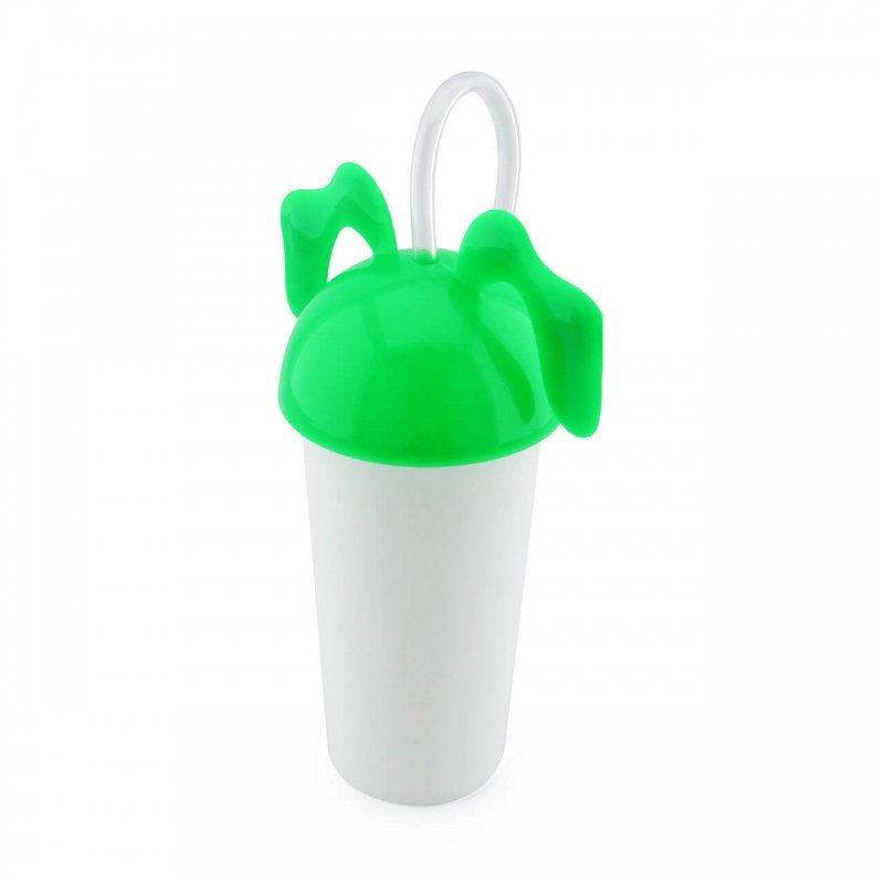 Vaso plástico con tapa en forma de perro, pitillo en caucho re-utilizable.