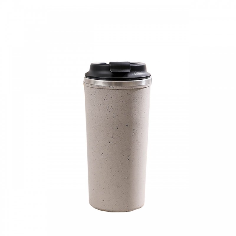 Vaso termo doble pared interior en acero alimenticio, exterior en paja de trigo con chupa en la base para evitar derrames.
